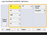 1 | Velg standardformatet for papiret. |