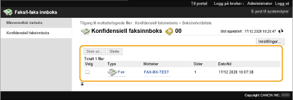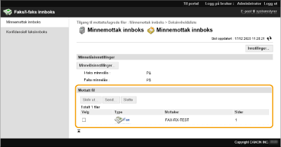 ![]() | Du kan bruke Fjernkontroll til å skrive ut, sende eller slette fakser og I-fakser som er midlertidig lagret i faks-/I-faksinnboksen. |
