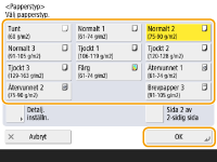 <OK>. Registrera ofta använda pappersformat och typer för universalfacket