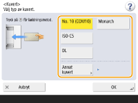 2 | Välj typ av kuvert. ![]() Tryck på <OK> och gå vidare till steg 5. |