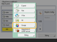 Mottagare som har registrerats i snabbvalsknappar kan kombineras till en grupp och registreras som en och samma mottagare.