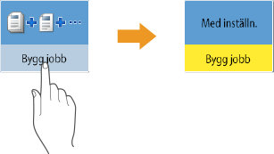 är placerad i det nedre högra hörnet på skärmen för att visa inställningsskärmbilden. När inställningarna har gjorts, visas inställningsstatusen i den övre delen av knappen och färgen på den nedre delen ändras.