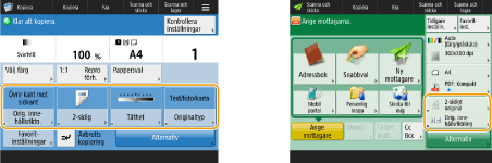 Du kan ändra vilka inställningsknappar som visas på skärmbilderna med grundläggande funktioner (för kopiering, fax och scanning). Du kan även visa en annan grundläggande funktionsskärmbild anpassad för varje inloggad användare.