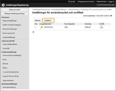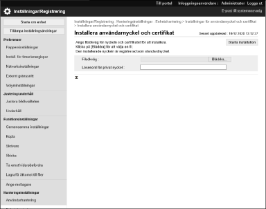 Ett systemtillval krävs för att använda den här funktionen. Systemalternativ Du kanske inte kan registrera vissa typer av nycklar och certifikat. Systemspecifikationer |