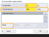Tryck på <IPv4-adressfilter> eller <IPv6-adressfilter>.