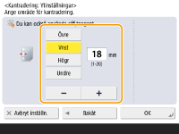 3 | Tryck på <Centrera> eller <Sidor>, och ange varje raderingsbredd. |