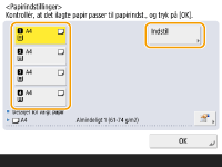 Hvis det viste papirformat/den viste type afviger fra det ilagte papirformat/den ilagte type, skal du vælge den papirkilde, som papiret er lagt i, og trykke på <Indstil>.