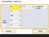1 | Vælg den papirskuffe, hvor papiret er ilagt, og tryk på <Brugerdef. format>. |