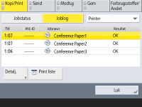 1 | Tryk på <Gem> <Joblog> <Print liste>.![]() |
