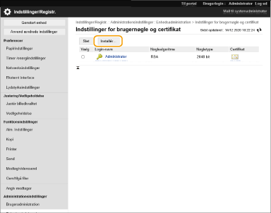 Det er nødvendigt med systemtilbehør for at anvende denne funktion. Systemindstillinger Du kan muligvis ikke registrere visse typer af nøgler og certifikater. Systemspecifikationer |