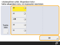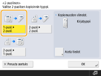 Määritä <Alkuperäisen tyyppi> ja <Kopiomuodon viimeist.> ja valitse sitten <OK>.