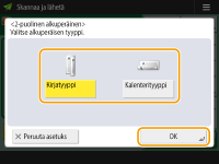 Valitse <Kirjatyyppi> tai <Kalenterityyppi> ja sitten <OK>.