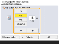 <Kehyksen poisto>.1 | Valitse <Alkuperäisen kuvan poisto> ja tarkista <Alkuper. koko>. ![]() Jos <Alkuper. koko> -kohdassa näkyvä koko ei ole sama kuin alkuperäisen koko, valitse koko valitsemalla <Muuta>. Vain kosketusnäytössä näkyvät alkuperäisten koot voidaan skannata. |