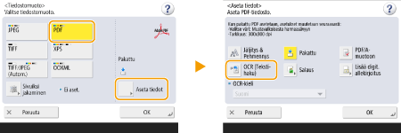 1 | Valitse <PDF> press <Aseta tiedot> <OCR (Tekstihaku)>.![]() |