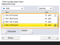 Kui laaditavat paberitüüpi ei kuvata, vajutage klahvi <Detailsed seaded>, et teha loendist sobiv valik.