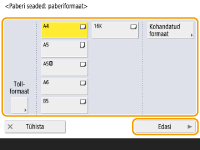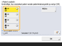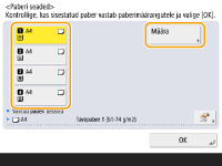 Kui kuvatav paberi formaat/tüüp erineb laaditud paberi formaadist/tüübist, valige paberiallikas, kuhu paber on laaditud, ja vajutage <Määra>.