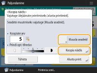 Vajutage <Muuda seadeid> seadete muutmiseks. Nupp <Koopia näidis> kuvatakse pärast seadete muutmist. Paljundage jälle näidis.
