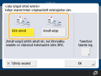 Kui jaotises <Värvivalik> on seatud mõni muu seade kui <Automaatne (värviline/MV)>, tehakse samad toimingud nagu <Kõik värvid>, isegi kui valite <Ainult valge>.
