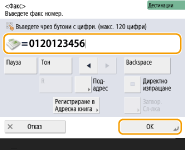 За да изпратите факсове в чужбинаВъведете международния код за достъп, кода на държавата и факс номера в този порядък. Ако не можете успешно да се свържете с дестинацията в чужбина, натиснете <Пауза> за въвеждане на пауза между номера и следващия номер. За да изпратите факсове с подадресМашината поддържа използването на ITU-T* стандартни подадреси. Ако факс машината на получателя е съвместима с ITU-T подадресите, можете да подобрите конфиденциалността на изпратените документи с помощта на подадрес и парола. За да изпратите документ с подадрес, въведете факс номер, натиснете <Подадрес> или <Задаване на Детайли>, след което въведете подадреса и паролата. * Означава International Telecommunication Union-Telecommunication Standardization Sector (Международен съюз по телекомуникации сектор по стандартизация в телекомуникациите), който е групата, която прави препоръки, свързани със стандартизацията на телекомуникациите в целия свят. |