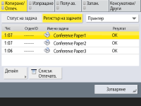 За документи, изпратени по имейл, този списък показва резултатите от обмена на данни между машината и имейл сървъра, а не между машината и дестинацията. Ако изберете <Задав. изход. Бр. изпращ.> в стъпка 3, може да зададете броя резултати от регистъра, които да се виждат в списъка. Може да зададете дали този списък да се отпечатва автоматично, или не. |