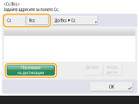 Дестинация, различна от имейл дестинация, може да се зададе с <Посочване на дестинации>, но не може да се задава в Cc или Bcc или да се премества към Cc или Bcc.