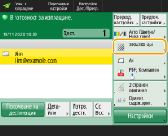 Екран с основни функции за сканиранеЗадаване на дестинации от адресната книга