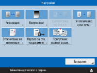 Показват се бутоните за промяна на настройките за отпечатване и текущите настройки.