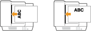 Точніше сканування оригіналівОригінали, завантажені в подавач, скануються під час подавання в апарат. З іншого боку, оригінали, розміщені на склі експонування, залишаються в незмінному положенні під час сканування. Для точнішого сканування рекомендовано розміщувати оригінали на склі експонування. |