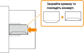 У цьому розділі описується процедура завантаження конвертів у правильній орієнтації, а також дії, які слід виконати перед завантаженням конвертів. Опис загальної процедури завантаження конвертів у багатоцільовий лоток див. в розділі Основний спосіб завантаження паперу. |