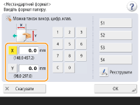 Натисніть кнопку <X> або <Y>, щоб ввести довжину кожної сторони за допомогою цифрових клавіш. ![]() Якщо зареєструвати часто використовуваний формат паперу на кнопках <S1>-<S4>, їх можна викликати простим натисканням. Реєстрація паперу довільного формату (папір нестандартного формату) | |