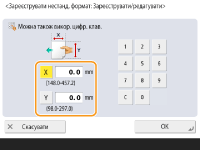 Укажіть довжину сторін <X> і <Y>. Натисніть кнопку <X> або <Y>, щоб ввести довжину кожної сторони за допомогою цифрових клавіш.