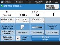 Натисніть кнопку , що відображається на екрані <Головний> і екрані основних функцій, щоб налаштувати екран, наприклад упорядкувати кнопки чи створити клавішу швидкого набору. Індивідуальні налаштування сенсорного дисплея![]() Ви можете змінити параметри дисплея, наприклад указати, який екран відображається відразу після ВВІМКНЕННЯ апарата, а також чи відображається повідомлення про залишок паперу та тонера. <Параметри відображення> Можна встановити показ екрана після певного періоду бездіяльності. <Функція після автоматичного скидання> |