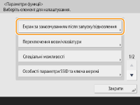 Якщо апарат налаштовано таким чином, що користувачі повинні входити в систему під час запуску (Налаштування часу відображення екрана входу в систему), відображається елемент <Екран за замовчуванням після запуску/відновлення> у розділі <Особисті параметри>. Екран, що відображається після запуску апарата, можна налаштувати окремо для кожного користувача.