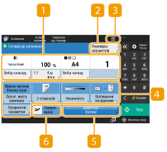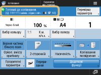 Якщо натиснути <Копіювання> (Екран <Головний>), з’явиться екран основних функцій копіювання.