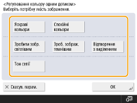 Можна вибрати кілька типів якості зображення одночасно. Однак неможливо одночасно вибрати <Яскраві кольори> і <Спокійні кольори>, а також неможливо одночасно вибрати <Зробити зобр. світлішим>, <Зроб. зображ. темнішим> та <Відтворення з виділенням>.