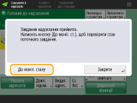 Якщо надіслати інтернет-факс адресату, який не підтримує режим передавання, на екрані <Монітор стану> відображатиметься повідомлення <Очік. результату...> навіть після завершення надсилання. Це повідомлення відображатиметься, доки не мине час, заданий для параметра <Час очікув. передав. в повному режимі>.