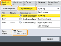 1 | Натисніть <Копіювання/Друк> <Журнал завдань>. |