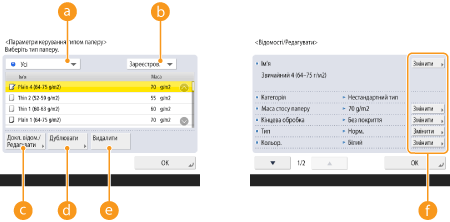 Під час реєстрації параметрів для нестандартного типу паперу не забудьте змінити його назву. Не можна змінювати параметри типу паперу за замовчуванням, зареєстровані в апараті. |