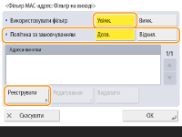 Укажіть для параметра <Використовувати фільтр> значення <Увімк.>, виберіть <Політика за замовчуванням>, а потім натисніть кнопку <Реєструвати>.