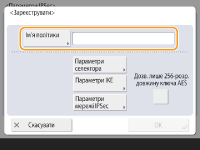 2 | Налаштуйте необхідні параметри. ![]() <Термін дії>Установіть термін дії створеного IKE SA. Обов’язково встановіть або <Час>, або <Формат>. Якщо встановити обидва значення, застосовується те з них, якого буде досягнуто раніше. <PFS>Якщо встановити для функції досконалої прямої секретності (PFS) значення <Увімк.>, рівень секретності ключа шифрування збільшиться, але швидкість передавання даних сповільниться. Крім того, на одноранговому вузлі зв’язку слід увімкнути функцію PFS. <Алгоритм автентифікації/шифрування>Виберіть <Авто> або <Параметри, указув. вручну>, щоб установити спосіб зазначення алгоритму автентифікації та шифрування для етапу 2 підключення за протоколом IKE. Якщо ви вибрали <Авто>, алгоритм автентифікації та шифрування ESP встановлюється автоматично. Якщо потрібно вказати певний метод автентифікації, натисніть <Параметри, указув. вручну> і виберіть один з указаних далі методів автентифікації.