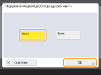 Якщо функцію реєстрації номера доступу ввімкнуто, користувачі не зможуть указати адресата за допомогою параметра <Попередні параметри>. |