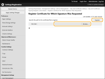 Натисніть кнопку [Browse...], укажіть файл (сертифікат) для реєстрації та натисніть кнопку [Register].