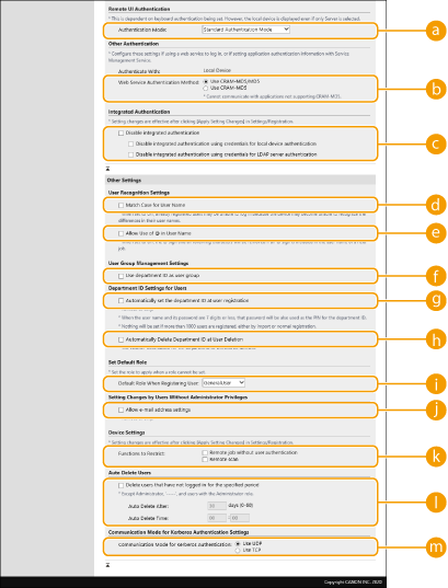 Спосіб автентифікації, вибраний у розділі [Web Service Authentication Method:], також використовується для персональної автентифікації за допомогою програмного забезпечення керування адресною книгою. <Імпорт/експорт із ПЗ для керування адрес. книгою> |