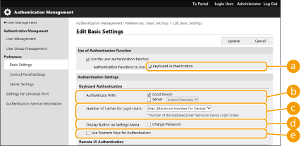 Установіть прапорець для параметра [Keyboard Authentication].