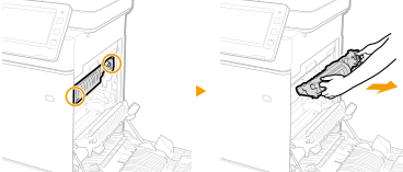 3 | Обережно витягніть папір. Витягайте папір, тримаючи його якомога горизонтальніше, щоб незакріплений тонер не впав. ![]() |