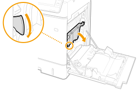 6 | Обережно витягніть папір. Визначте, яким способом легше витягнути застряглий папір, і спочатку спробуйте цей спосіб. Витягайте папір, тримаючи його якомога горизонтальніше, щоб незакріплений тонер не впав. ![]() |