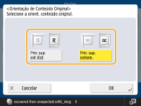 Selecione <Prte sup ext dist> para originais com orientação horizontal ou <Prte sup. extrem.> para originais com orientação vertical.