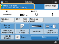 Apresenta o estado das programações, como o rácio de cópia, o formato de papel e o número de cópias. Não se esqueça de confirmar as programações para uma cópia correta. Para alterar as programações, carregue no botão sob a secção de apresentação.