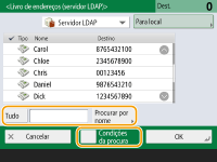 Os itens <Gravar novo destino>, <Details/Edit> e <Delete> em <Gravar/Editar> no ecrã <Livro end. (Local)> podem ser utilizados para gravar novos destinos, verificar detalhes e editar/apagar destinos. Para utilizar o livro de endereços remoto, é necessário configurar as programações da máquina servidor. Programe para abrir o livro de endereços remoto externamente na máquina servidor. |