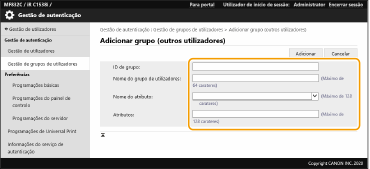 Clique em [Adicionar grupo (utilizadores do dispositivo local)...] ou [Adicionar grupo (outros utilizadores)...].